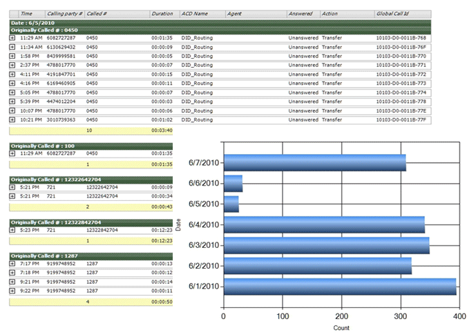 - Flexible reporting timeframe lets users generate reports based on call